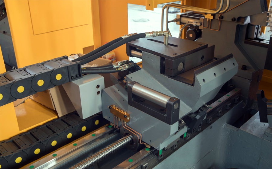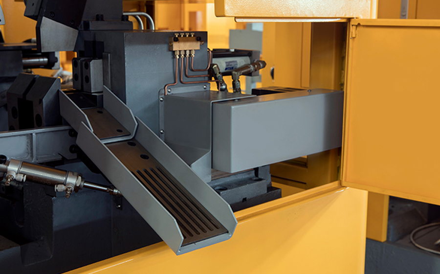 適用機(jī)型:60機(jī)70機(jī)80機(jī)100機(jī)110機(jī)120機(jī) 由伺服電機(jī)驅(qū)動(dòng)滾珠絲桿以高強(qiáng)度滾柱線軌為導(dǎo)向進(jìn)行水平式平穩(wěn)進(jìn)給,將被夾壓的工件高精度快速切斷。具有切割穩(wěn)定、精度高、速度快等優(yōu)勢(shì)。斜切式比剪刀式和平推式切割具有排屑容易切割阻力小、切割直徑大等優(yōu)勢(shì)。 |