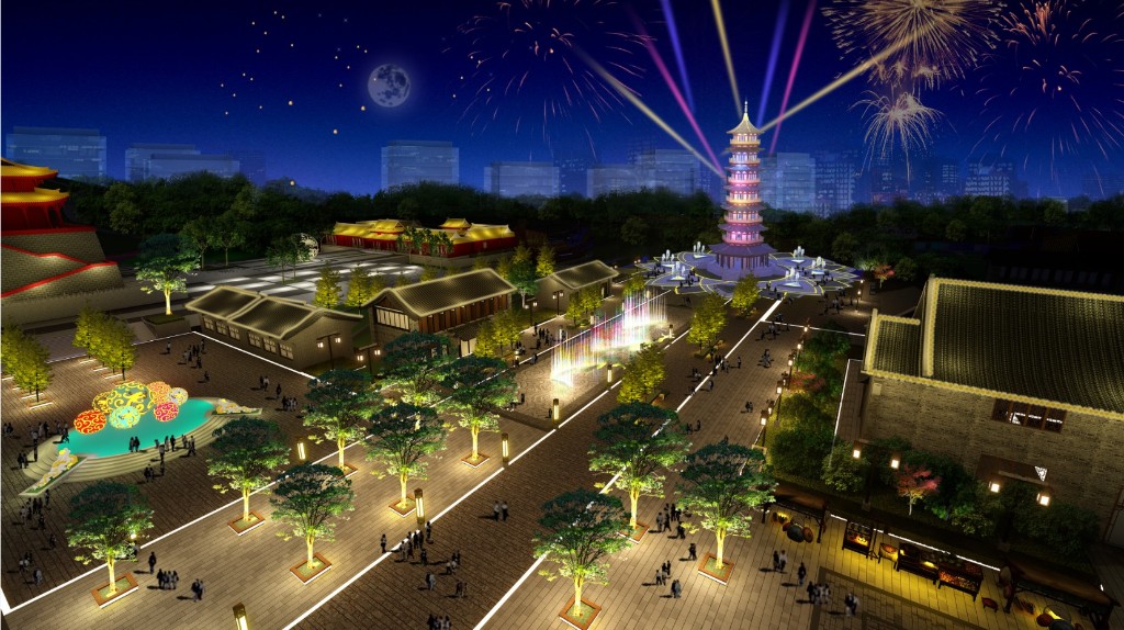 1、依托大明文化為底蘊,以龍為符,彰顯皇家風范,融合市井風俗,通過智能科技、全息投影及多元時尚業態,展示大明文化園的魅力。