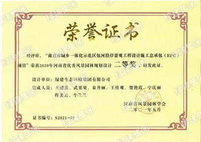 商丘市城鄉(xiāng)一體化示范區(qū)包河沿岸景觀工程EPC項目——2020年河南省優(yōu)秀風(fēng)景園林規(guī)劃設(shè)計二等獎