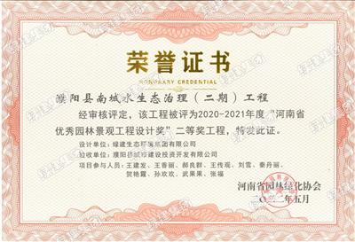 濮陽縣南城水生態(tài)治理(二期)工程 2020-2021年度河南省優(yōu)秀園林景觀工程設(shè)計獎二等獎