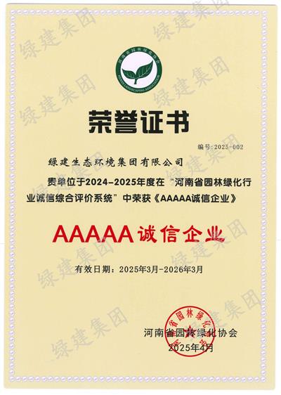 2024-2025年度河南省園林綠化協(xié)會AAAAA誠信企業(yè)