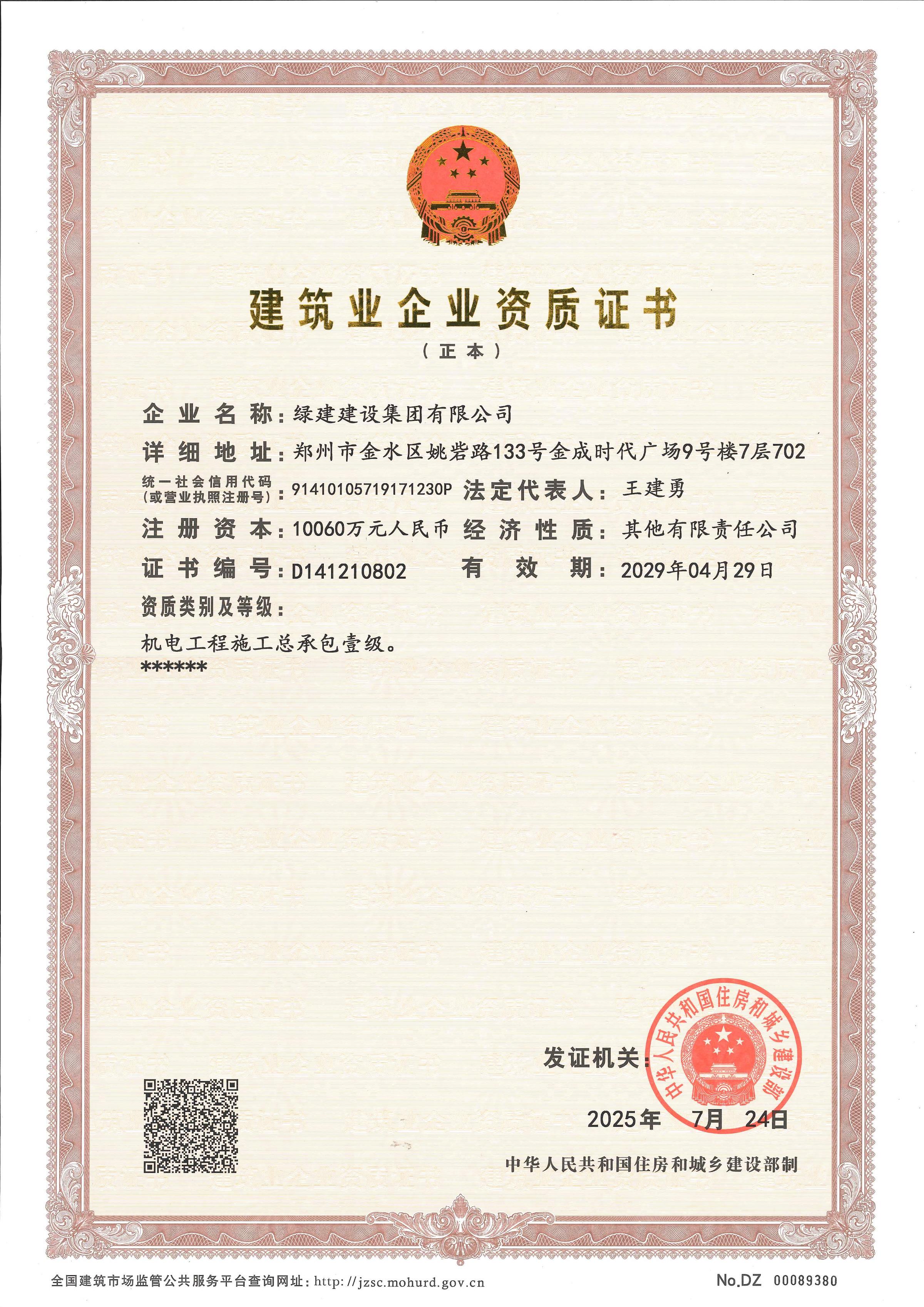 建筑業企業資質證書