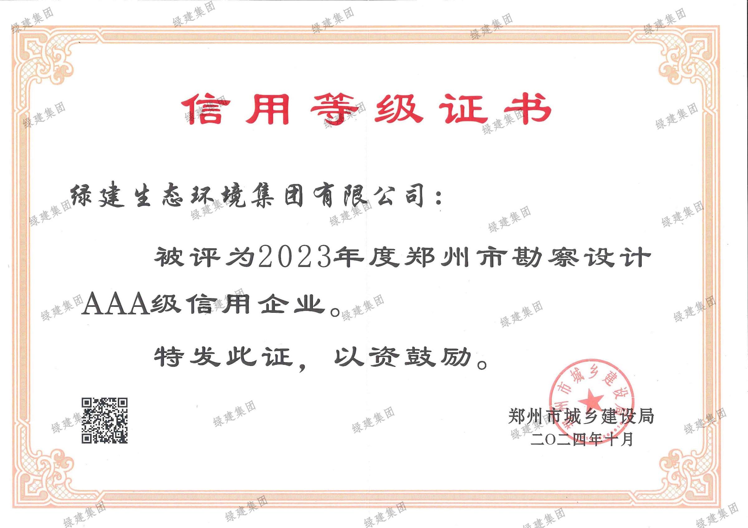2023年度鄭州市勘察設計AAA級信用企業(yè)