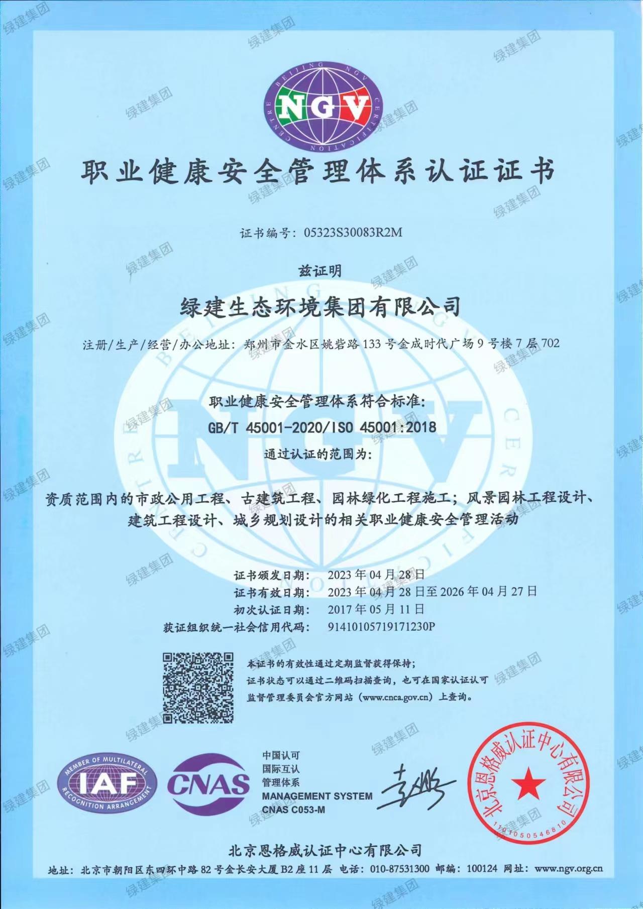 質量管理體系認證證書(園林綠化設計、建筑設計、城鄉規劃設計)