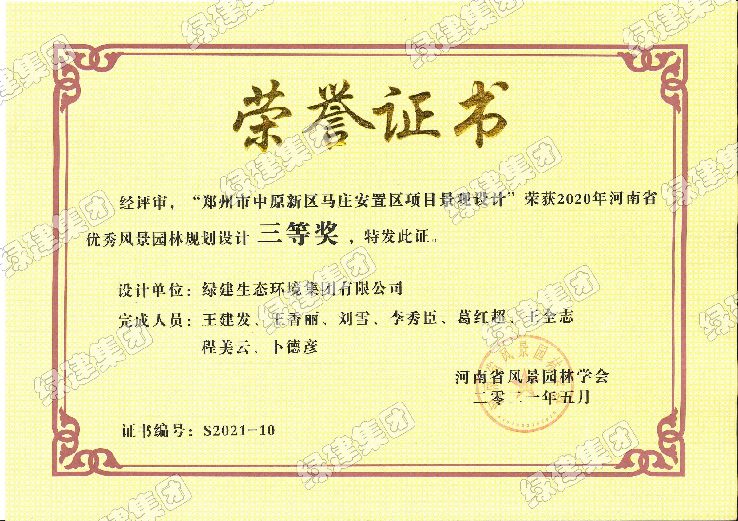 鄭州新鄭國際機場二期擴建工程機場公共區域綠化完善項目——2020年河南省優秀園林工程三等獎
