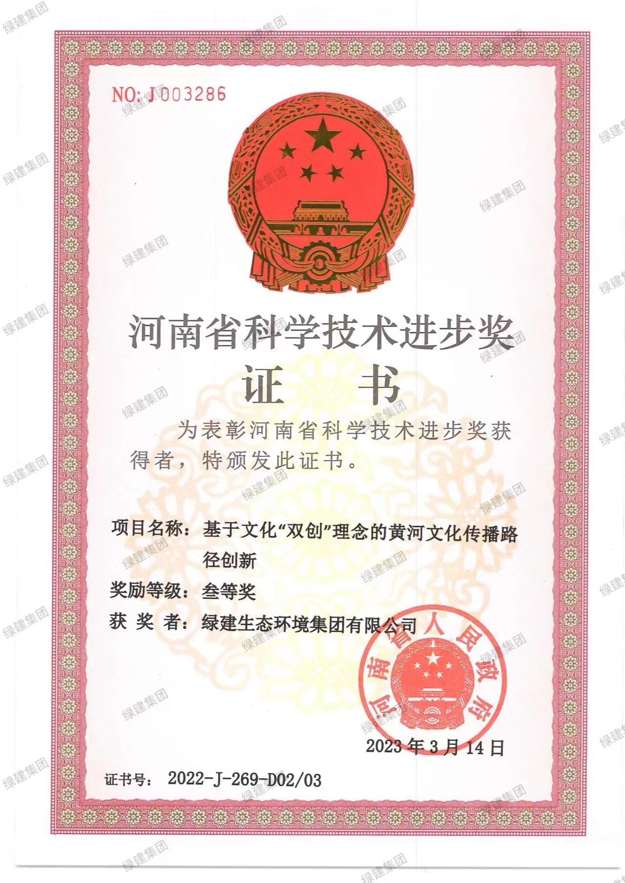 綠建生態(tài)河南省科技進(jìn)步三等獎